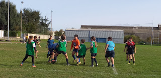 Après une longue interruption cause de la crise sanitaire , les jeunes rugbymens ont repris l'entrainement et ils avaient hâte de se retrouver sur le terrain et revoir les copains. Tout en respectant les gestes barrières, séance sans contact, la passe...........